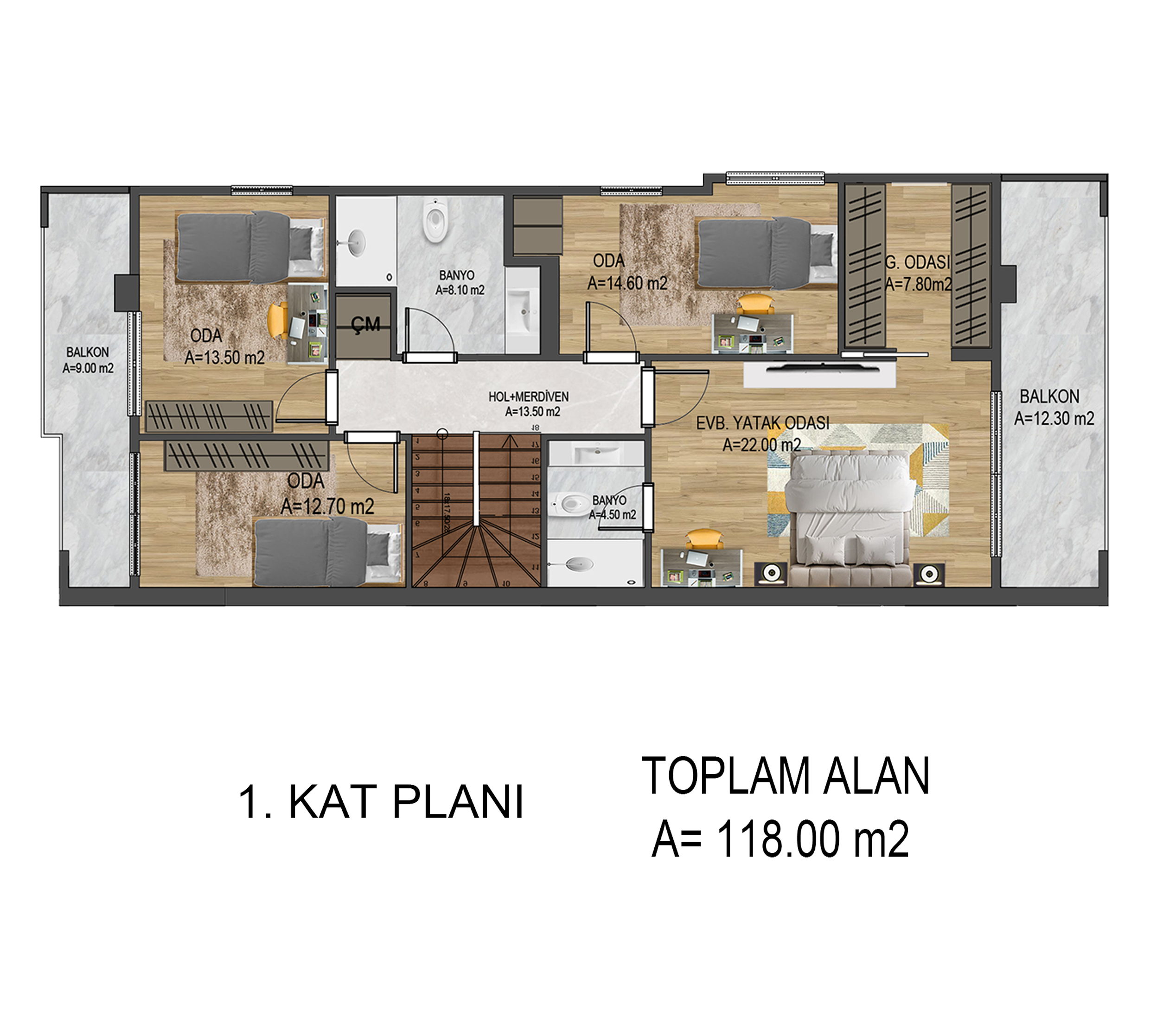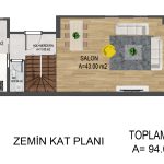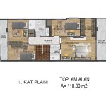 *PROJEMİZDE 1 VİLLANIN ZEMİN+1.KAT KULLANIM ALANI TOPLAM 233 M²’DİR.