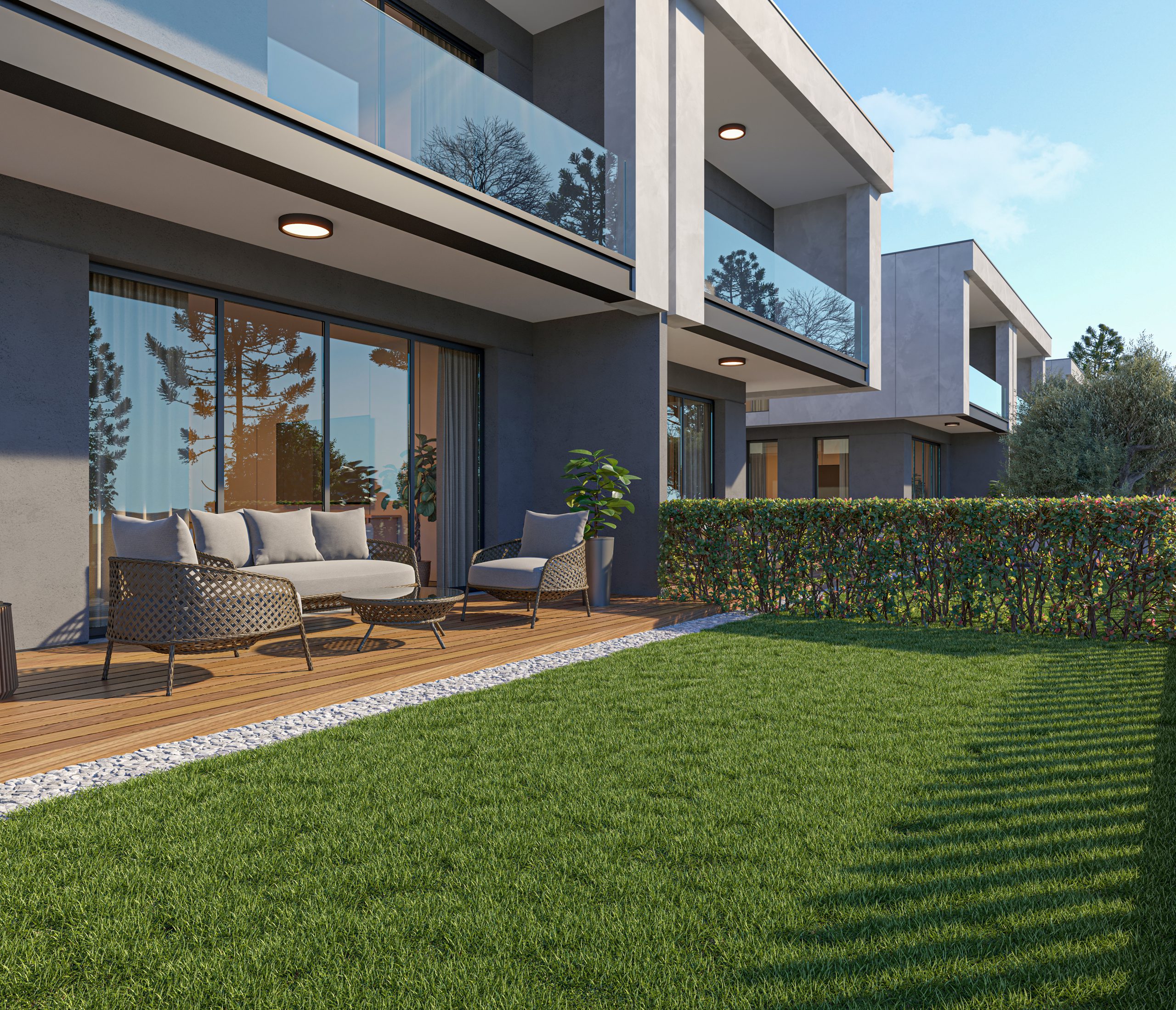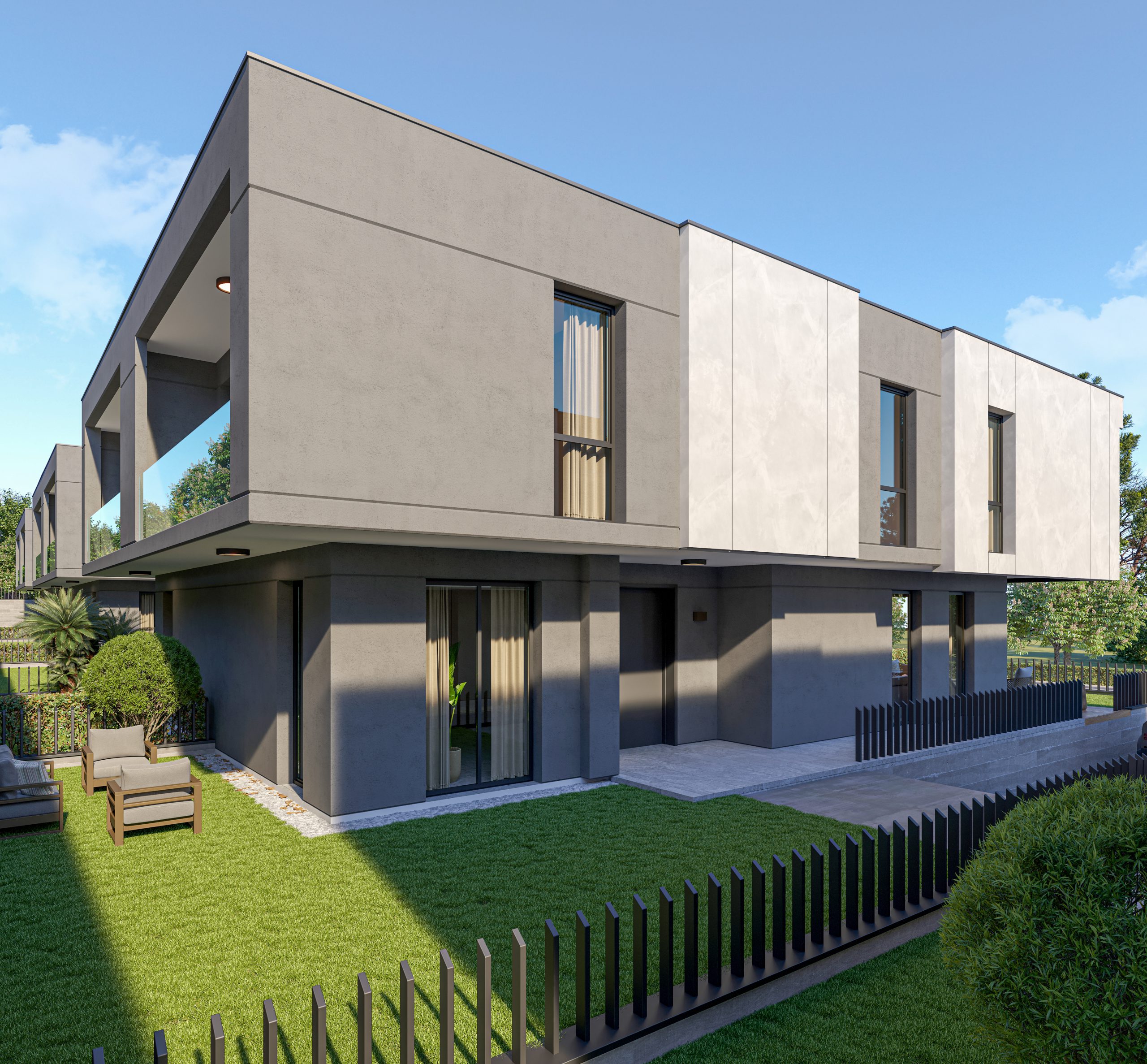 *VİLLALARIN BAHÇE KULLANIM ALANLARI 140 M² İLA 158 M² ARASINDADIR.